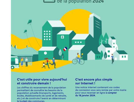 La commune est chargée d'organiser le recensement général de la population qui se déroule tous les 5 ans, sous l'égide de l'INSEE. Sous l'autorité du coordonnateur communal, les agents recenseurs procèdent à la collecte des informations sur le terrain auprès des habitants, du 18 janvier au 17 février 2024, dans ce cadre, la commune recrute 8 agents recenseurs.